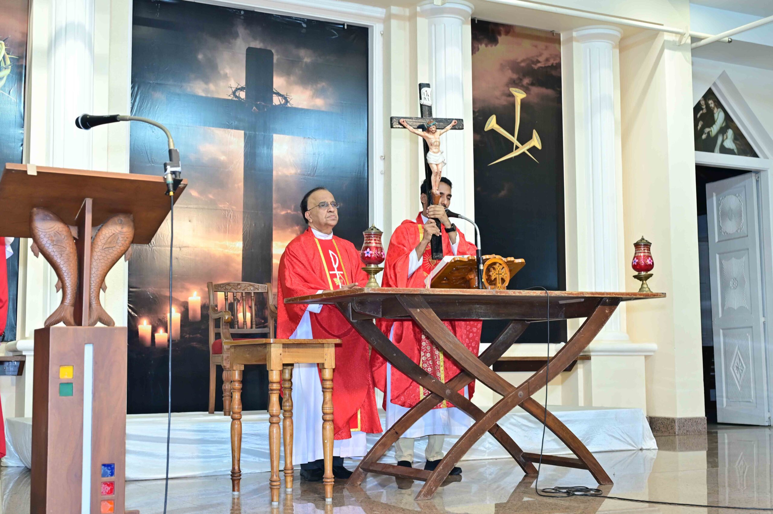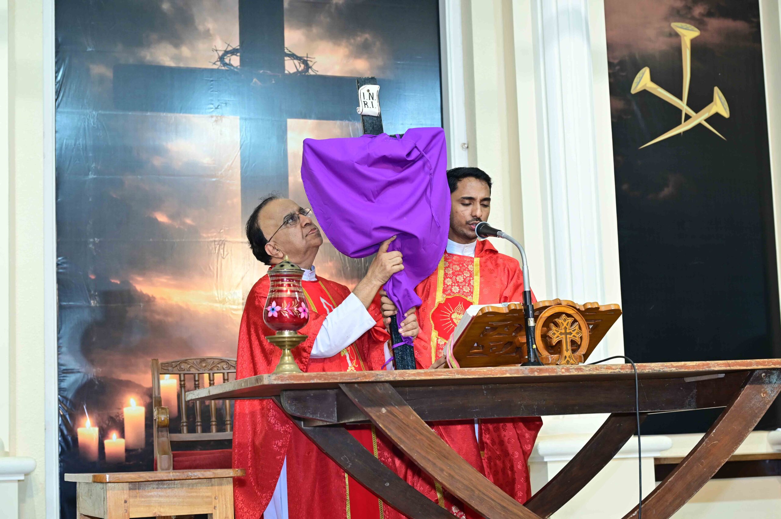 Liturgy of the Word – The congregation listened attentively to readings from the Holy Scriptures, including the Passion of Christ according to the Gospel of St John. The Passion was movingly proclaimed by Fr Pradeep along with Simon, Roshan and the choir backing up, bringing the story of Christ’s suffering to life.