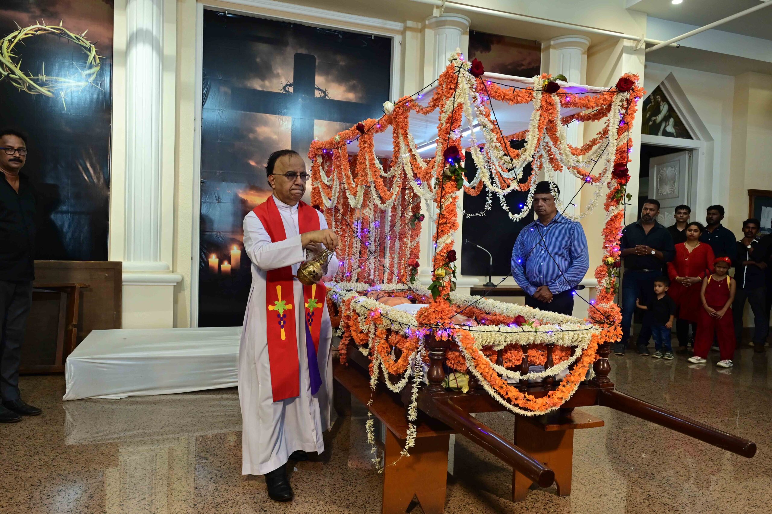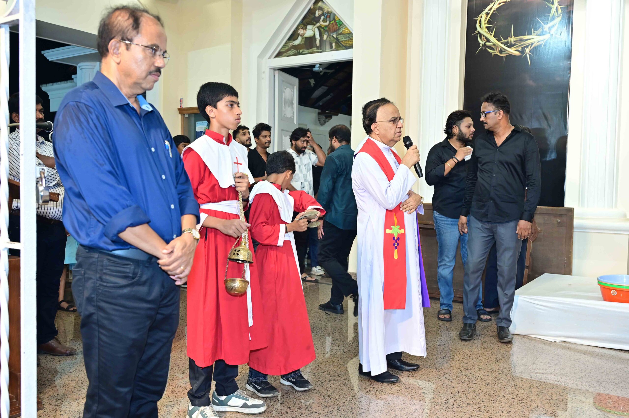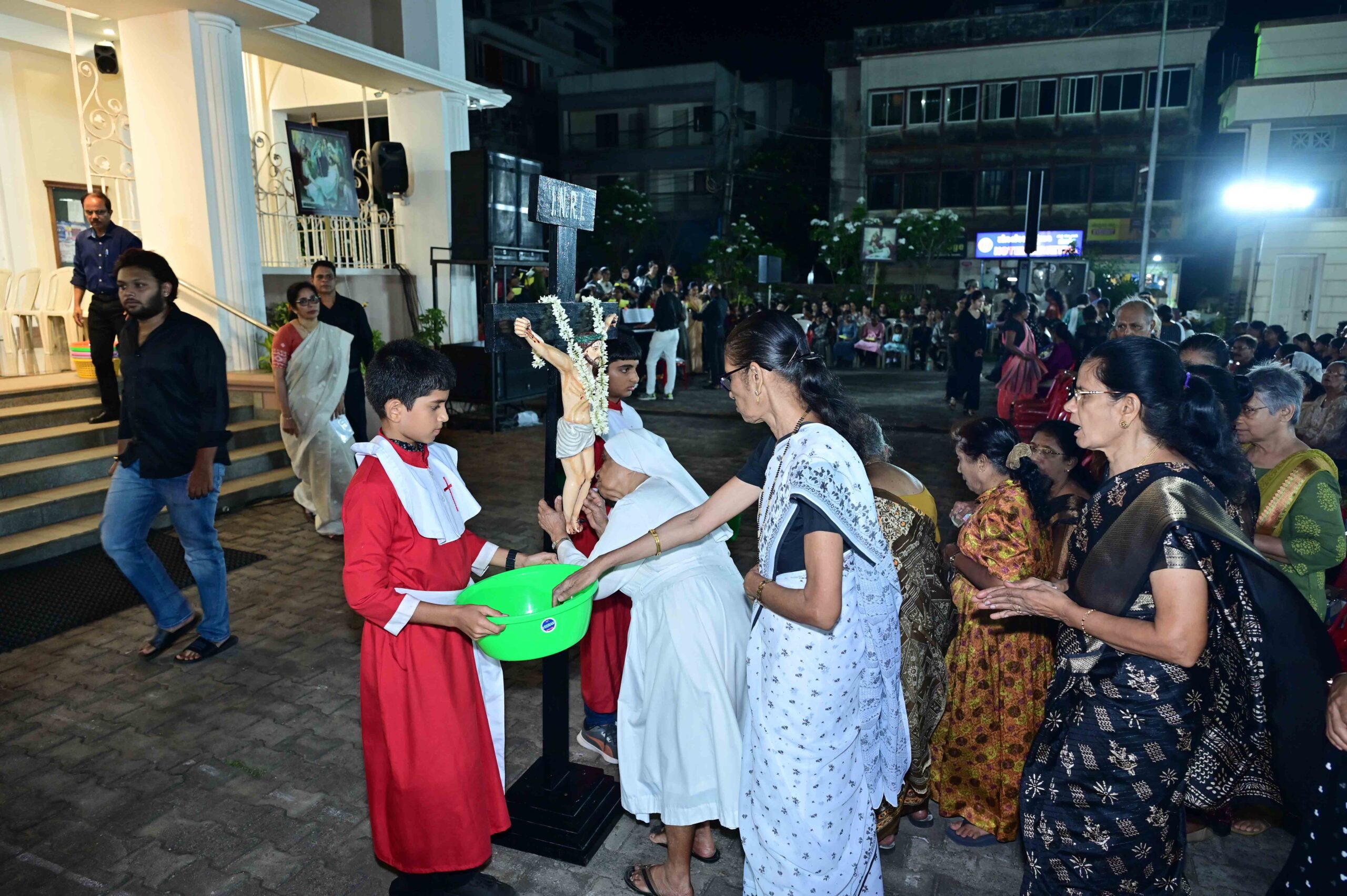 Veneration of the Cross – A deeply symbolic moment followed as Fr Roque brought the Crucifix to the altar. Fr Pradeep solemnly unveiled the Cross in three stages, each unveiling accompanied by the faithful’s acclamation: “Behold the wood of the Cross, on which hung the salvation of the world.” Parishioners then approached the Crucifix with reverence, expressing their devotion by kissing the Cross.