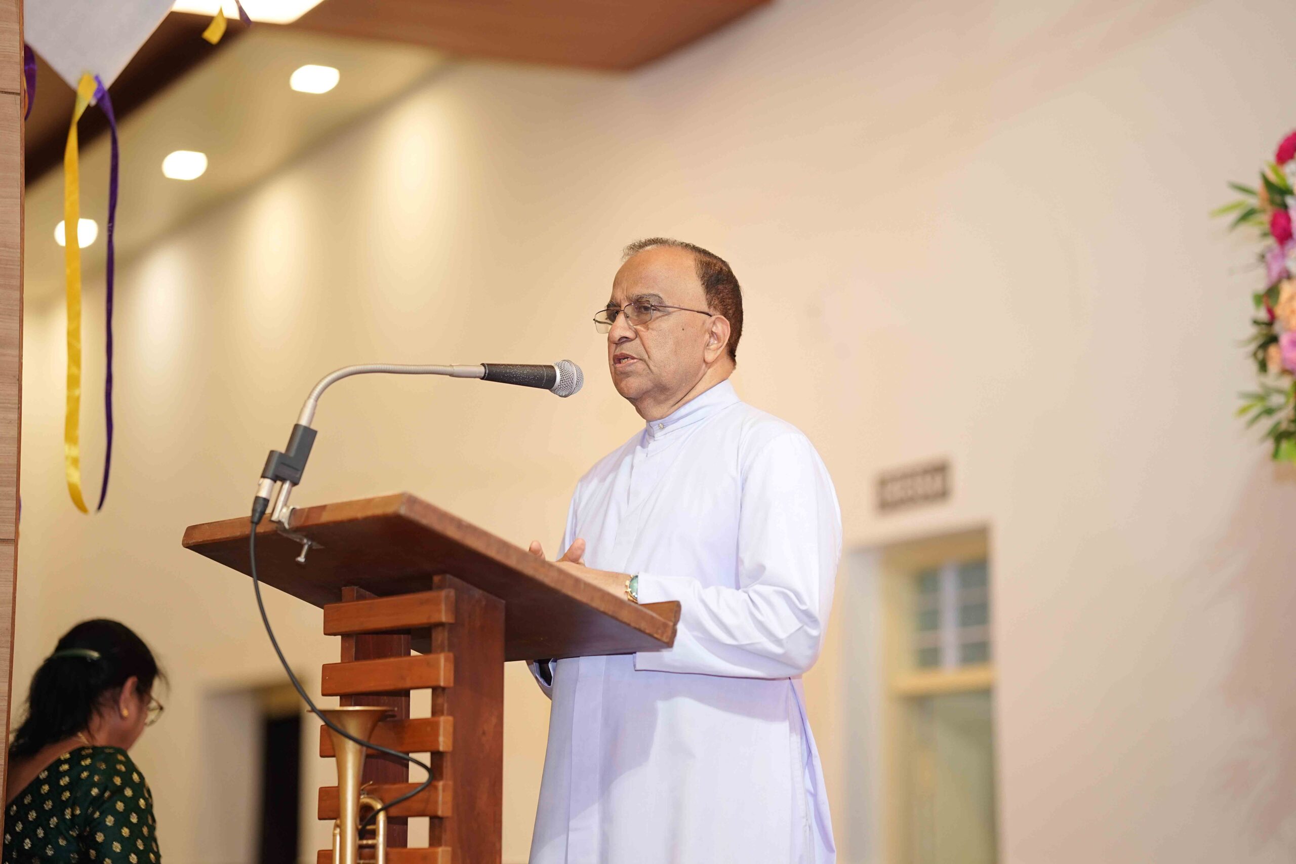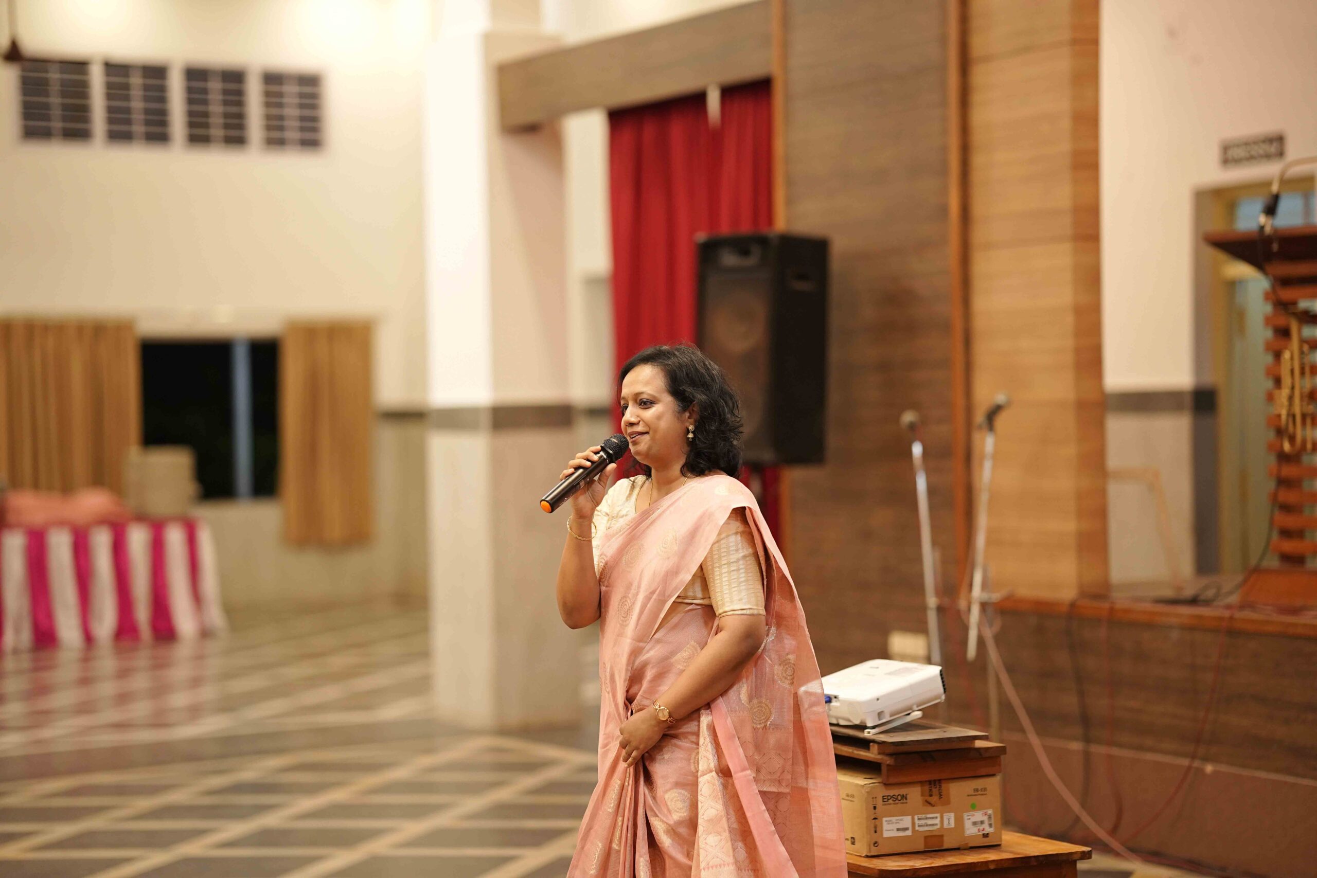 Following the Mass, the stage program commenced at 6:15 pm at the Golden Jubilee Hall. The evening was compered gracefully by Rita Menezes, while the prayer song rendered by the Saheli group created a serene and prayerful atmosphere to begin the proceedings.